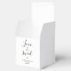 "Love is Sweet" wedding favour box with a cute little gold heart and personalizable bride and groom names, wedding date, and hashtags.