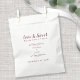 Elegant, classic Wedding favour bag features "Love is sweet, please take a treat!" quote with the bride and groom's first names and wedding event date in trendy burgundy on a transparent background that showcases your choice of colour paper. This modern simple design provides timeless, classic sophistication. Personalise the names of the couple, and event date in elegant lettering and script. These are a perfect accompaniment for any wedding party to show appreciation to your guests! Be sure to see the collection link on this page to view all of the matching items! Please direct questions or custom requests to invitationsuites@gmail.com.