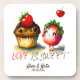 Fun watercolor illustration couple in love: red strawberry and maffin with quote Love is sweet