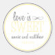 Love Is Sweet Labels / Stickers (Light Pale Pastel Lemon Yellow / Dark Grey / Silver / White)...These fun and chic love is sweet labels / stickers are ideal for wedding favours or a wedding candy bar / buffet full of chocolate, suckers, lollipops, taffy, and sugar. Let your guests know to take a treat home with them to remember your wedding. The design features an array of whimsical fonts with the bride and groom names as well as the wedding date. Great for a candy themed wedding. Ideal for a destination wedding. Perfect for any bride or groom with a sweet tooth. Great idea for a bridal shower or bachelorette party too. Full customisable...just change the names and the dates and your favour stickers are ready to be used. Available in a wide range of colours to match your wedding colours. See WindyCityStationery.com for our complete line of "Love Is Sweet" labels in a wide range of colours as well as matching "Love Is Sweet" postage stamps, thank you cards, return address labels, save the dates and more.