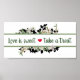 Green and white floral design with text reading: "Love is sweet take a treat"