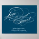 Simple and elegant sign for your wedding reception. "Love is sweet, please enjoy a treat courtesy of the newlyweds"