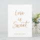 Love is Sweet Sign | Stylish Gold Rose Lettered Invitation