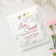 These beautiful favour bags are simple, elegant and beautiful. They feature a classy and stylish design with elegant red script lettering and silver grey frilly lace curls and swirls in the corners. The text reads: Love is Sweet, Please take a treat! There is room for your names and the wedding date below. Wonderful and thoughtful way to thank your guests for celebrating with you.