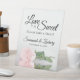 This pretty tabletop sign is perfect for a treat table at your wedding reception. It features a simple yet elegant design with a photo of a single long-stemmed blush pink coloured rose reflecting in a pool of water with waves and ripples. The sign reads: Love is Sweet, please take a treat! There is room for your names and the wedding date below.