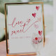 "Love is sweet , please take a treat" sign with hearts and flowers for a Valentines Day themed Bridal Shower: