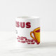 LOVE JESUS LOVE COFFEE LOVE READING Christian Coffee Mug, with CUSTOMIZABLE TEXT. Design shows a ticklist of Jesus, Coffee, Book and a large cup of coffee with coffee beans in a vintage yellow and burgundy style. There is CUSTOMIZABLE TEXT at the top right corner that reads LOVE JESUS LOVE READING, which can be replaced with your name or text of your own choice. This Christian Jesus reading coffee mug would make a great gift for Christians of all ages.