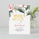 A botanical yet modern choice for bridal showers. This foil invitation card features bold classic and script typography with in stamped gold foil over a crisp white background. A top boarder of holly and berries frames your custom details in shades of red and green. party details in the template fields. The card reverses to a complimentary red colour. To see more Christmas bridal shower and wedding shower invitations like this visit my store.