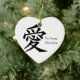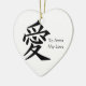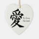 The perfect gift for Valentine's Day, Christmas Day, Chinese New Year, or a birthday, our heart shaped ornament features the kanji calligraphy for "love." Add your own text front or back, too.