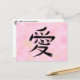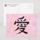 A beautiful postcard with the kanji for love., affection, and favourite. The meaning of the kanji is written on the back of the card.