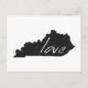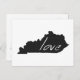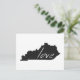 Kentucky love is easy to spread everywhere through the mail with this post card. With the shape of the Bluegrass state of Kentucky filled in black and the word love written inside with white hand written lettering the message is clear that you love the Commonwealth of Kentucky.