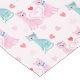 An illustration of adorable pink and green kitties frolicking among a scattering of red and pink hearts on a pastel pink background