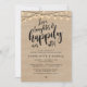 Planning a happily ever after dinner and dancing celebration at the wedding day? Invite your beloved guests with this "Love, Laughter and Happily Ever After", in modern rustic script design (cottage brown wood, string lights background) themed, indicating the date, time, venue, and RSVP details.