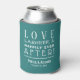 A little something for a wedding favour - personalised can coolers. We show Teal Green with White lettering, but you can change to any colours. The wording ":Love, Laughter & Happily Ever After" is completely customisable or just personalise with your names and wedding date. You can add text to the front and back - even the bottom! Use Zazzle's "Personalise" tool to enter your information. If you need to change the placement of the text boxes, font colour or size just click on the "Click to customise further" button to change those things and/or add text to the back and bottom and change the background colour. Fun favour gift idea for wedding shower, rehearsal dinner or wedding reception. MORE COLORS in our store.
