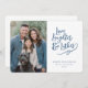 Love the personalization. It is unique in design from commercial products. Looking forward to sending this greeting to my good friends at holiday time. Makes a statement. The design and printing are terrific. The script writing is perfect. Color and quality of paper is a plus. I will be very proud to send this greeting.