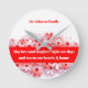 This pretty clock perfect for a housewarming gift has red daisy flowers and the words: May love and laughter light our days and warm our hearts & home. Personalise with family name.