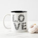 The repetition of the small letters within the larger letters emphasizes the word and adds emphasis to the overall message of love.
