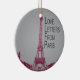 Eiffel tower and Parisian cityscape design with bold letterpress style typography.