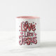 This uplifting 11 oz Christian coffee mug features the message “Love Like Jesus” in vibrant pink lettering surrounded by hearts and a sweet bow. A meaningful Christmas or everyday gift for women who enjoy positive, faith-filled designs.