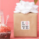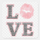 This design features a pastel set of lips and LOVE in a black and white striped pattern.