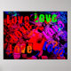 The word "Love" is repeated in psychedelic colors to form a peace tapesty. This colorful and unique artwork was part of the calendar of digital art created from photographs I took of nature scenes and then manipulated with color, special brushes, filters, and texts called "A Year of Peace."