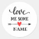 Love me some custom name in mixed cursive script font and serif font. Accented with a red heart and and arrow. Personalise with your name or message in matching font, using the product template.