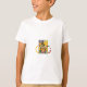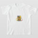 100% cotton so perfect for summer, It is a nicely designed t-shirt, the fabric is soft and the seams finished well, the body of the t shirt has no side seams. I bought a medium size for my two grandsons, aged 9 and 8 it will be slightly big on them but I would rather that than too small