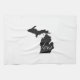 Show some Michigander love while cooking for loved ones and friends in the kitchen with this Love Michigan towel featuring the silhouette shape of the Wolverine state filled in with black background making the white lettering of the word Love really stand out.