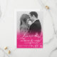 This fun Save the Date features a fuschia gradient with pretty "Love Is In The Air" script typography. Easy, breezy to personalise ~ just use the CUSTOMIZE IT button to add your text and your favourite photo! Comes in 13 colours. For questions or custom requests, email: cheryl@cheryldanielsart.com. "Love Mist" original design by Cheryl Daniels © 2014.