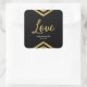 This modern square sticker features an elegant geometric chevron and the word "Love" in faux gold against a black background. It's a versatile sticker that you can personalise for various events you're planning to celebrate like wedding,engagement, anniversary, etc. Check out matching invitations and items here http://www.zazzle.com/collections/modern_faux_gold_chevron_celebration_collection-119531050277382712?rf=238364477188679314