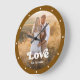 Love | Modern Script with Photo Rustic Brown Large Clock