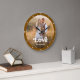 This neutral and stylish clock features your favorite personal family photo, with trendy white typography and a spot to add your name. The border of the clock is a rustic brown color.
