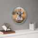 This colourful and stylish clock features your favourite personal family photo, with trendy white typography and a spot to add your name. The border of the clock is a sage green colour.