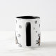 This mug for the Basset Hound Dog owner features a portrait of an adorable Basset. The image is printed twice, and between them is an oval with the black text that says "Love my BASSET HOUND DOG". The oval and dog images are placed on a background sprinkled with paw prints. Your monogram or name is in a customizable text field at the bottom.