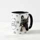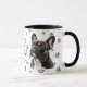 This mug for the French Bulldog owner features an artist's watercolor portrait of a beautiful dark French Bulldog. The image is printed twice, and between them is an oval with the black text that says "Love my French Bulldog". The oval and dog images are placed on a background sprinkled with paw prints. You may easily change the text to something else, or personalize it, if you'd like.