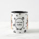 This mug for the Golden Retriever Dog owner features an artist's watercolor portrait of a beautiful Golden Retriever. The image is printed twice, and between them is an oval with the black text that says "Love my Golden". The oval and dog images are placed on a background sprinkled with black paw prints. You may easily change the text to something else, or personalise it, if you'd like.