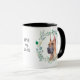 "LOVE my DANE" declares this mug for the owner of a Great Dane Dog. Each side of the mug has a beautiful watercolor portrait of a fawn coloured Dane framed within a blue green leaf wreath. Between the two images is the text, which may be easily customised, or even removed, by you.