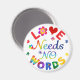 Inspirational Autism quote, Love Needs No Words, with beautiful floral illustrations and Autism puzzle pieces to support Autism children and their families.