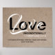 Stylish rustic look inspirational Christian poster based on 1 Corinthians 13:7-8. Text reads LOVE UNCONDITIONALLY in black and white typography. The Scripture verses are written in full, but this text is CUSTOMIZABLE so you can change the Bible translation to your favorite version.