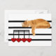 Long haired orange tabby cat takes a nap on musical notes made of red hearts, he loves you even when he's sleeping cat lovers Valentine's Day or just love custom postcard