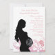 Feature the baby's *ultrasound in this beautiful baby shower design. The white background has pink and white flowers and swirls and a silhouette of a pregnant woman with a baby in her womb. *Don't have an ultrasound of the baby? Use this generic ultrasound provided.