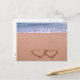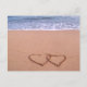 Two hearts on a sandy beach with a blue ocean ... perfect card for save the date, engagement announcements, anniversaries and more!