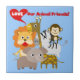 A lion, giraffe, monkey, zebra, and elephant with a red heart and text that reads Love Our Animal Friends on T-shirts, bodysuits, bibs, blankets, pillows, wall clocks, cards, key chains, mousepads,mugs, bags, stickers, and more!