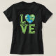 This t-shirt makes the perfect outfit on Earth Day and every day to raise awareness about loving our Planet Earth and about environmental protection. This shirt features the wording "Love" in green font with a heart-shaped smiling cartoon planet in place of the letter "o"