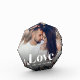 Create a sweet keepsake of your wedding, honeymoon or special moment with this custom, uniquely shaped acrylic photo block that's perfect for couples. Add a favourite photo and customise with your names across the bottom. "Love" appears as a white text overlay in modern lettering.