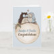 Wedding congratulations greeting card with digital graphics of two cartoon style owls sitting on a branch. Personalise with the bride and groom's names and change any of the other text to suit your needs.