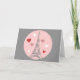 Silhouette of the Eiffel Tower in grey with pink and white hearts.