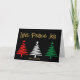 Beautiful Custom Christmas Card Featuring Three Abstract Christmas Trees And The Words Love Peace And Joy On Cover. Inside Greeting: Merry Christmas