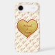 Gold heart with red border and red lettering background stamped with the word "Love". Personalise the name of lovers, spouses or friends. Elegant and romantic original design.