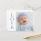 Adorable blue L-O-V-E typography with your personal photo for birthday postcard, birth announcement, thinking of you postcard.